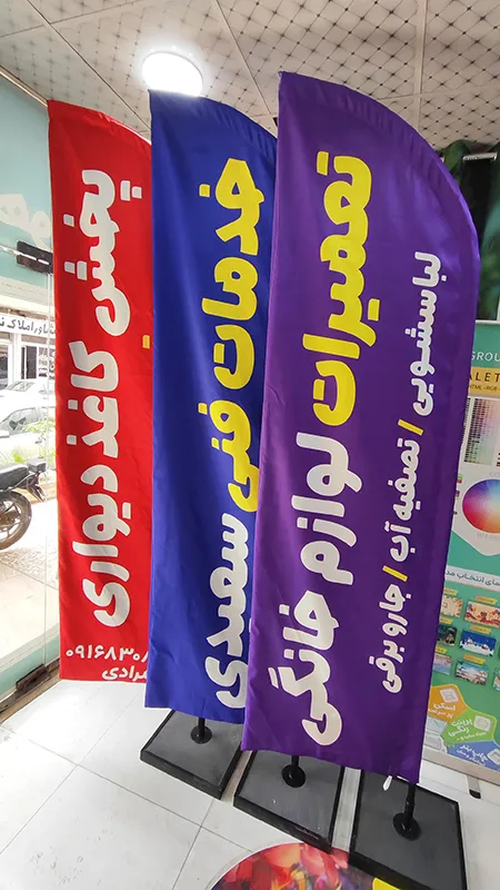 برای حفظ کیفیت این پرچم ها، بهتر است از شستشوی دستی با آب سرد استفاده شود و آن ها را در مکان خشک و دور از نور مستقیم خورشید نگهداری کنید. چاپ پرچم های ساحلی ساتن ریپس گزینه ای عالی برای تبلیغات و تزیین در فضاهای باز است و می تواند به خوبی هویت برندها را به نمایش بگذارد.