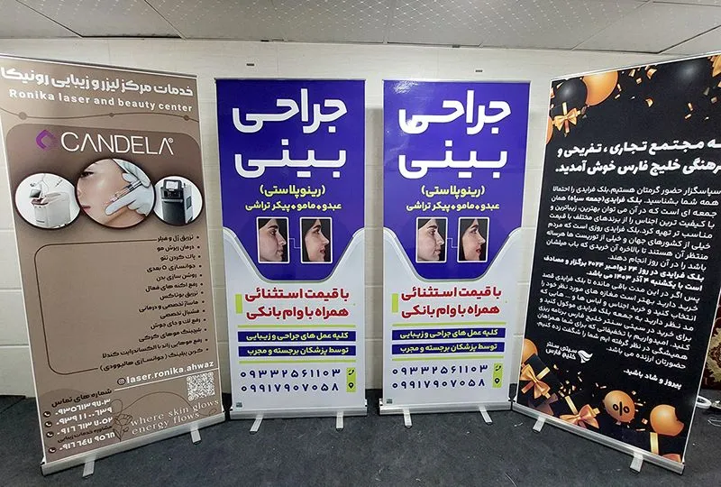 استندهای رول آپ ابزارهای مؤثری برای تبلیغات و نمایش محصولات هستند که به راحتی قابل نصب و جابجایی میباشند. با ویژگیهایی چون طراحی جذاب، صرفهجویی در فضا و قیمت مناسب، این استندها در نمایشگاهها، کنفرانسها و رویدادهای ویژه به جذب توجه مشتریان و ارائه اطلاعات کمک میکنند.